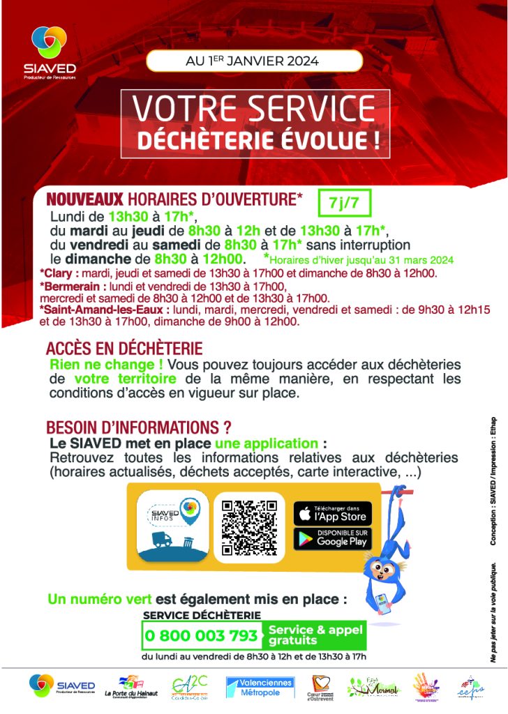 Vous aurez toujours accès aux 6 déchetteries du territoire (Beuvrages, Maing, Onnaing, Quiévrechain, Valenciennes et Vieux-Condé) accessibles grâce à votre pass déchet.