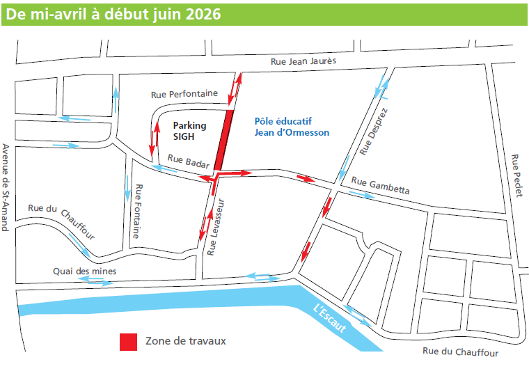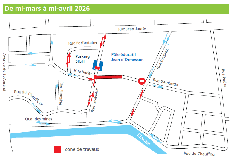 - Le parking SIGH reste accessible via la rue Levasseur.