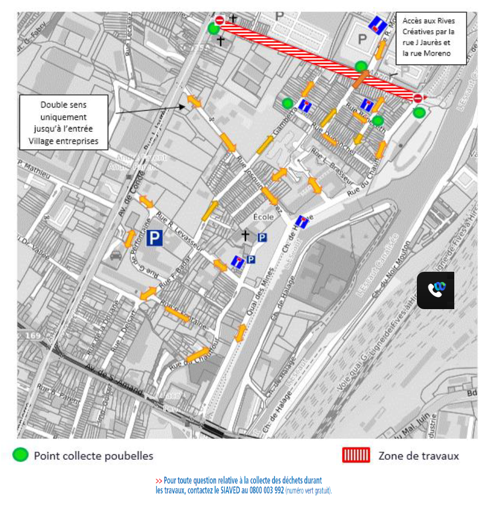 - Circulation des véhicules et stationnement interdits sur la zone de travaux. Accès piétons maintenus.