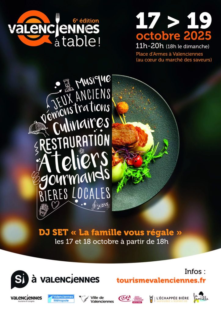 - Valenciennes à Table (Place d’Armes) : découvrez une immense table conviviale avec concerts, ateliers culinaires, DJ sets, dégustations et rencontres avec des chefs passionnés.