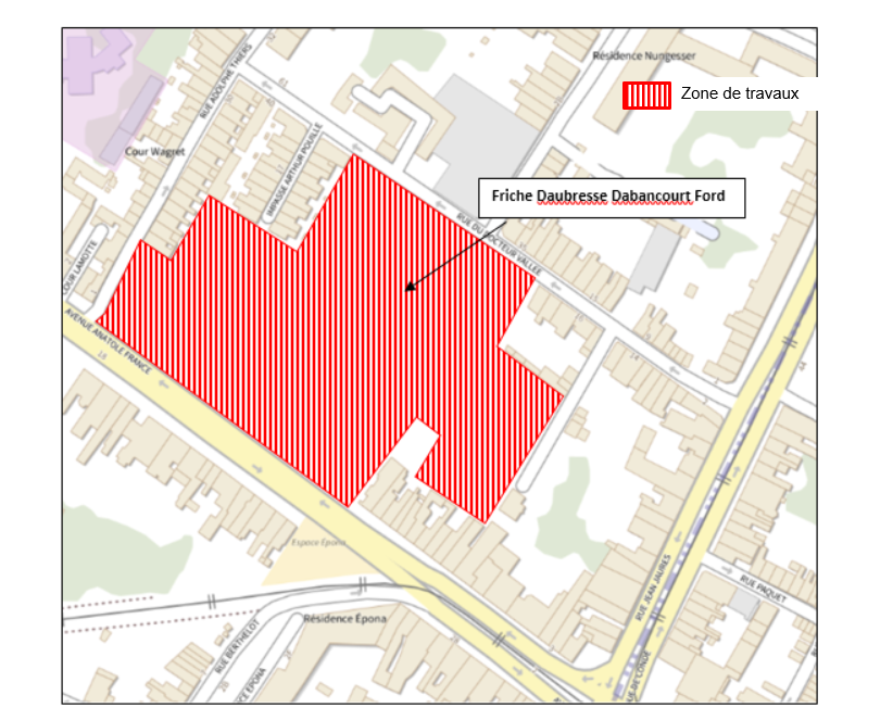 Du 9 mars au 28 août 2026, des travaux de comblement de carrières de craie sont prévus sur la Friche Daubresse Dabancourt Ford à Anzin.
