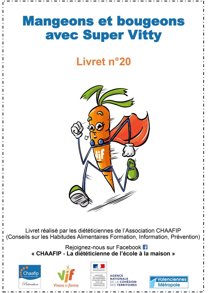 Dans le cadre de l’action « Vivons en Forme » VIF portée par Valenciennes Métropole, nous vous proposons un livret à destination des enfants et des familles comprenant des idées de recettes anti-gaspillages, de menus, d’activité physique et des jeux, pour continuer à bien manger et bouger ! Découvrez le livret n°20 du CHAAFIP.