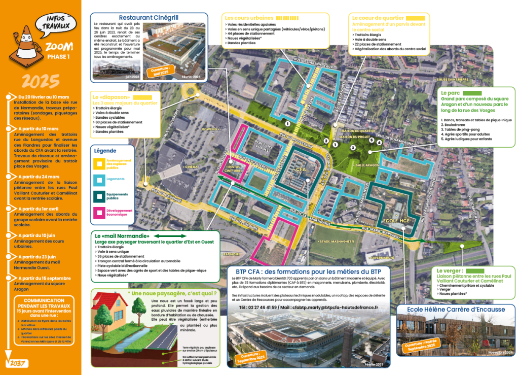 Le « MAIL NORMANDIE » dont les travaux ont démarré au 2ème trimestre 2025 sera un axe de circulation partagé au sein de Briquette et reliera le quartier d’Est en Ouest.