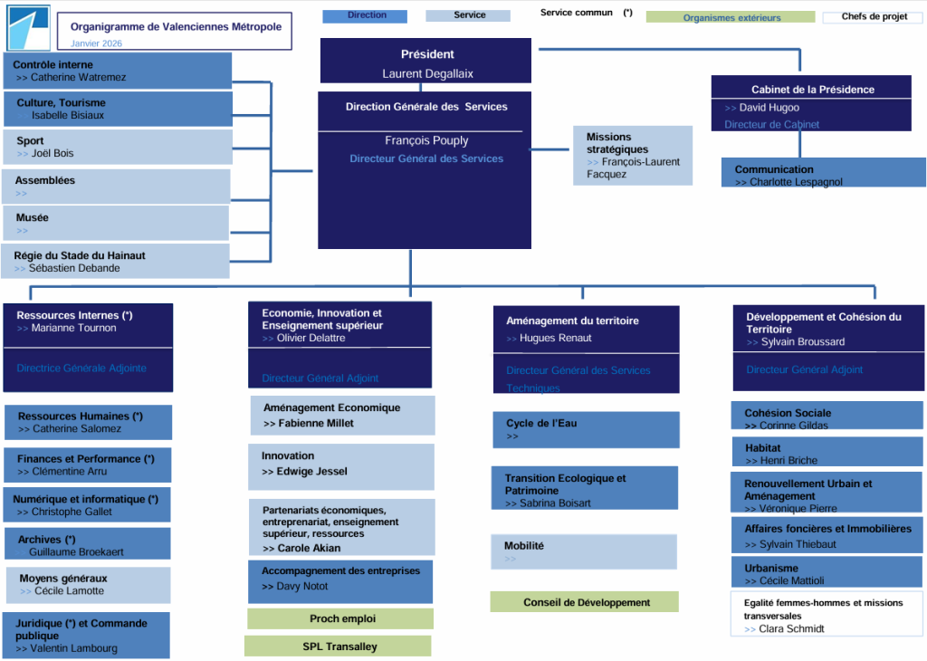 Les services de Valenciennes Métropole sont répartis en 4 directions adjointes